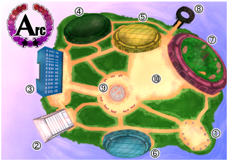 アークの所在地は不明で何処かの島であろうという噂はあるが特殊な結界により外部からは干渉されないようになっている。